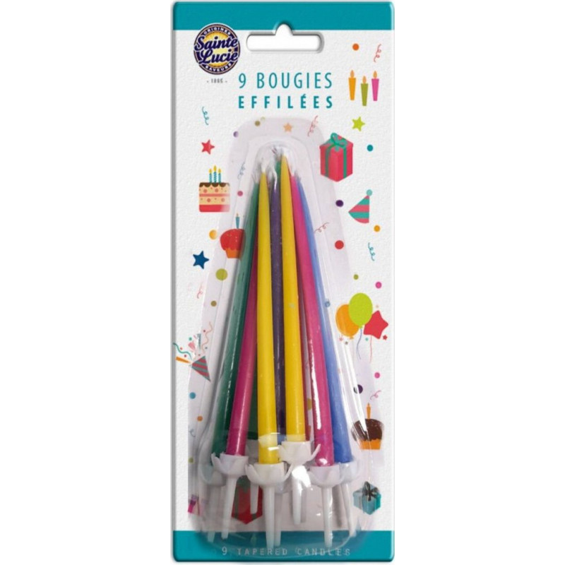 SAINTE LUCIE Bougies anniversaire effilées 9 bougies
