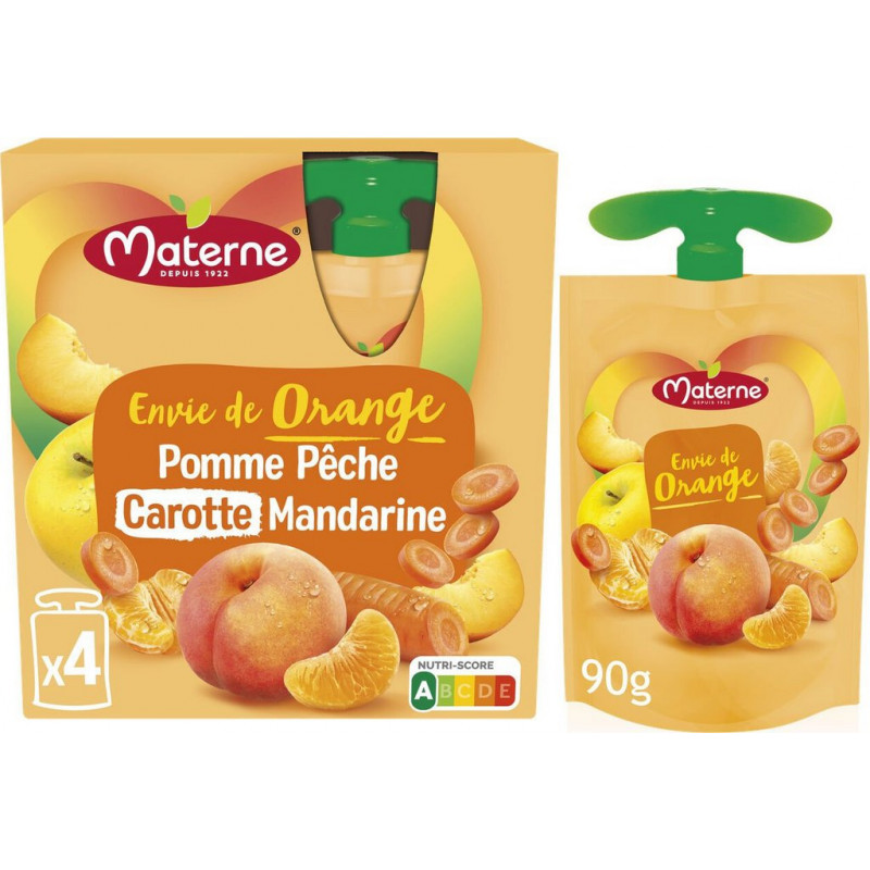 MATERNE Compotes Envie de orange pomme pêche carotte mandarine sans sucres ajoutés les 4 gourdes de 90g