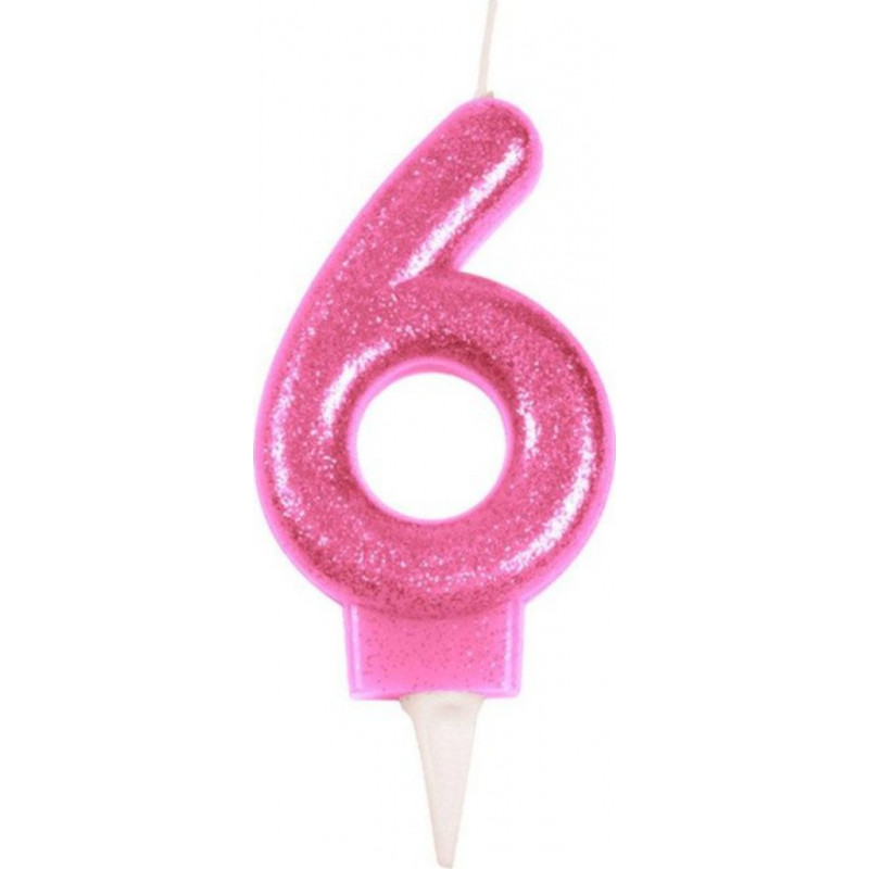 NC Bougie D'anniversaire Paillette chiffre 6 7cm Rose