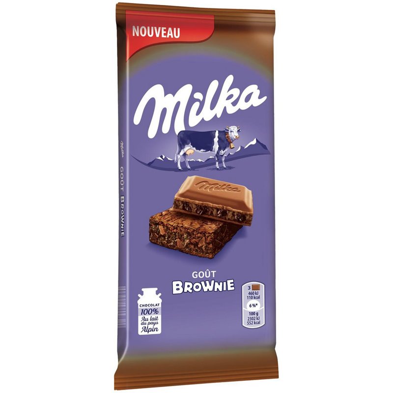 Découvrez Milka Brownie, une alliance inédite entre la tendresse du chocolat au lait Milka et l intensité d un biscuit brownie au chocolat. Une offre gourmande qui séduira les amateurs de chocolat! Lot économique de 18 tablettes. Sucre, graisse végétale (palme), LACTOSERUM en poudre (de LAIT), beurre de cacao, cacao maigre en poudre (8,5%), farine de BLE, LAIT écrémé en poudre, pâte de cacao, BEURRE concentré, émulsifiant (lécithines de SOJA), sirop de glucose-fructose, amidon de BLE, pâte de NOISETTE, poudres à lever (carbonate acide de potassium, carbonate acide d'ammonium, carbonate acide de sodium), sel, arômes. PEUT CONTENIR AUTRES FRUITS A COQUE. Produit unitaire EAN 7622210953902, lot de 9 EAN 3665816025776.