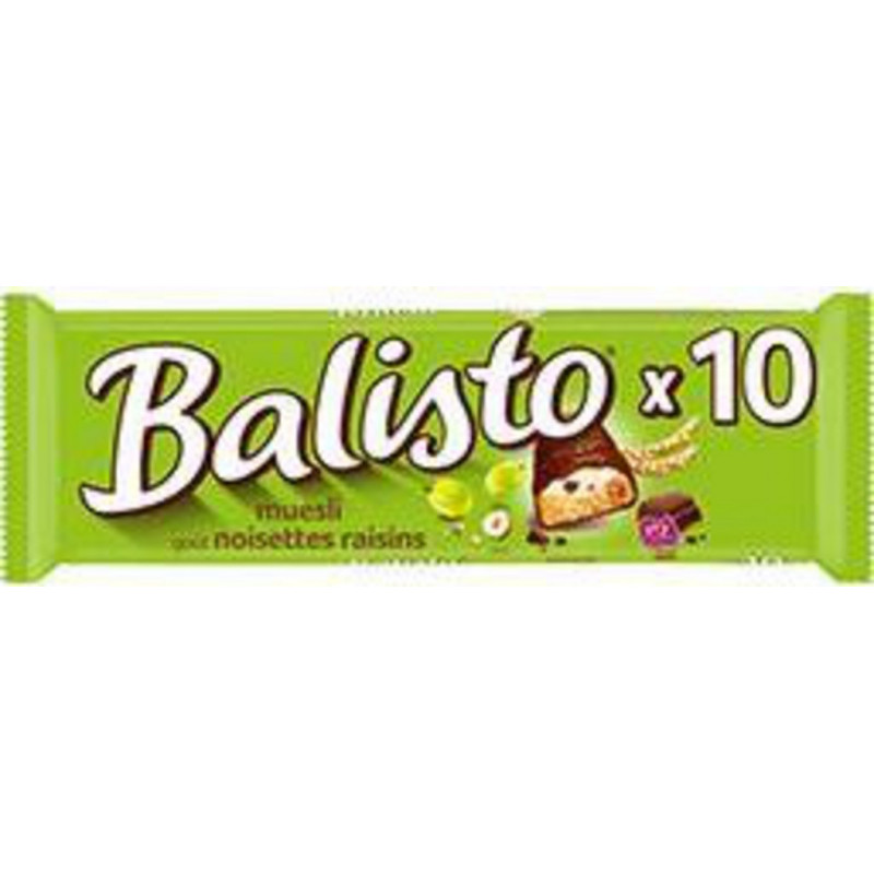 BALISTO Barres chocolatées muesli goût noisettes raisins X10 185g