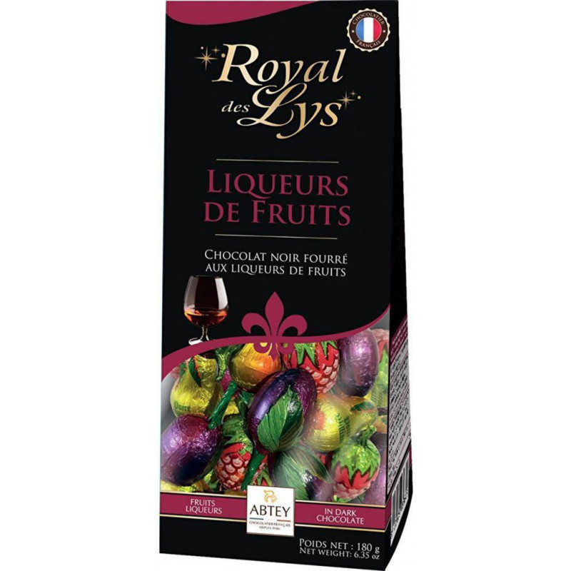 Royal des Lys Abtey Chocolat noir fourré à la liqueur de fruits 180g