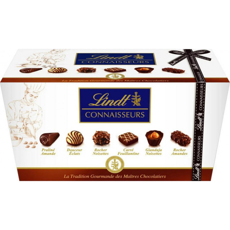 Pour offrir ou pour se faire plaisir, les Maîtres Chocolatiers Lindt ont imaginé pour vous un ballotin composé de fines bouchées de chocolat célébrant la saveur et l'onctuosité des meilleurs fourrages aux pralinés et au gianduja, préparés dans le respect de la tradition chocolatière. Sucre, LACTOSE, beurre de cacao, praliné NOISETTES 12% (NOISETTES, sucre), poudre de LAIT, pâte de cacao, matière grasse végétale (palme), NOISETTES 5,7%, praliné AMANDES 3% (AMANDES, sucre), AMANDES 2%, feuillantine 1% (farine de BLE, sucre, beurre LAITIER concentré, poudre de LAIT écrémé, malt d'ORGE, sel), beurre LAITIER concentré, poudre de LAIT écrémé, éclats de cacao, émulsifiant (lécithine de SOJA), extrait de malt d'ORGE, arôme, arôme naturel, miel, sirop de glucose, sel. Produit unitaire EAN 3046920071987.