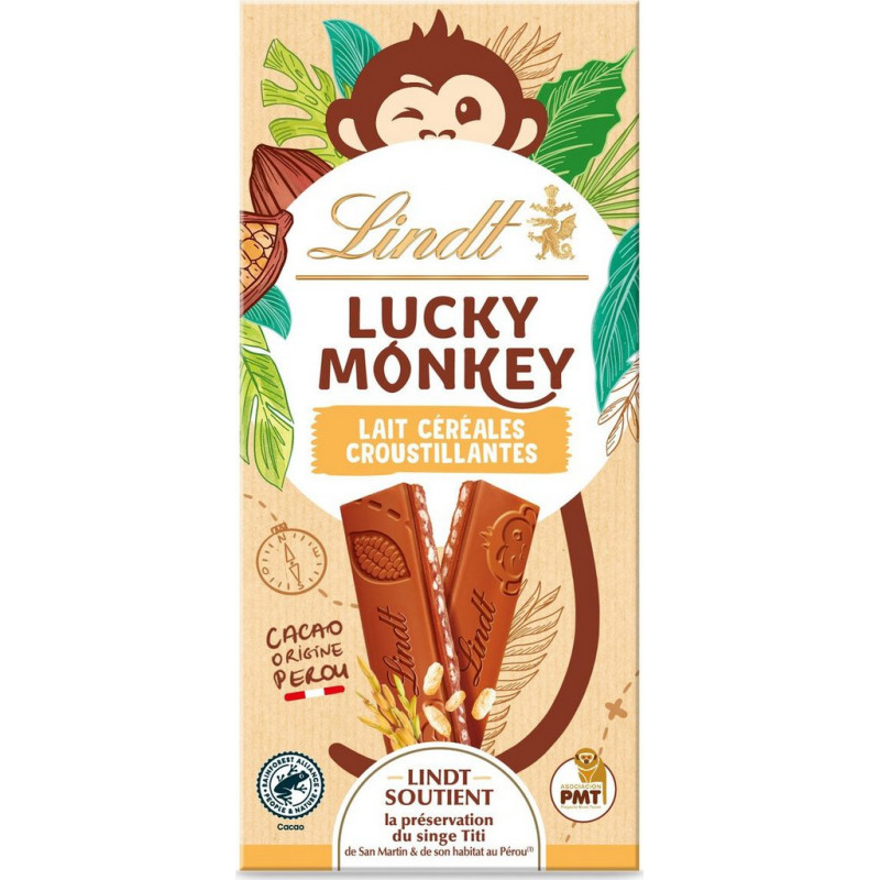 LINDT Tablette de chocolat au lait et céréales croustillantes 100g