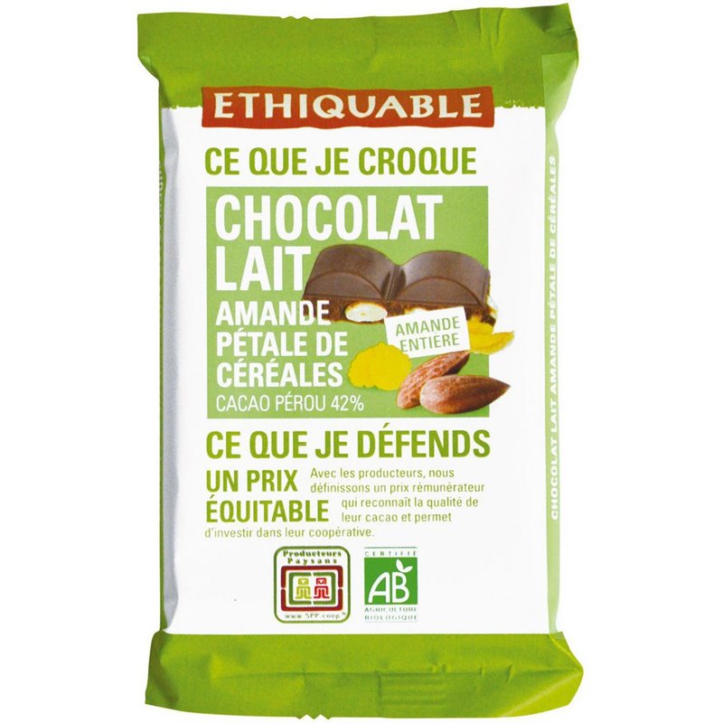 Ethiquable Chocolat Lait Amande Pétale de Céréales 100g (lot de 6)