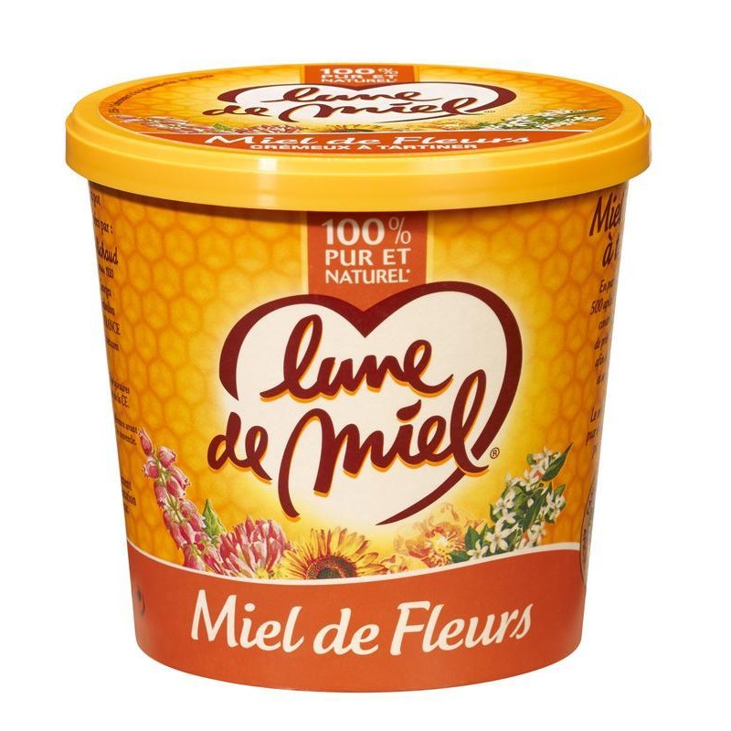 Miels. Marque Lune de Miel. Lot économique de 4 pots. Produit unitaire EAN 3088540754291, lot de 4 EAN 3701018080479.Destinatario :