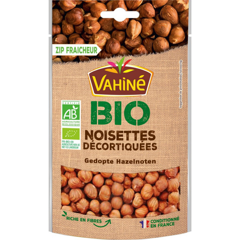 Nos noisettes sont 100% naturelles, sans colorant* ni conservateur et 100% issues de l’agriculture biologique. Elles sont récoltées à maturité dans le respect de l’environnement afin de préserver leur goût original et la biodiversité.Ces noisettes ont été conditionnées dans notre usine provençale.Nous nous engageons à réduire l’empreinte écologique de notre outil de production, nous réduisons nos déchets au maximum et recyclons presque 70% d’entre eux.*Conformément à la réglementation en vigueur.. logo: CERTIFIÉ AGRICULTURE BIOLOGIQUElogo: FR-BIO-09AGRICULTURENON-UENIET-EU LANDBOUW. Ingrédient: NOISETTES*. * issues de l'agriculture biologique. FRUITS A COQUE. peut contenir d'autres FRUITS A COQUE. Produit unitaire EAN 3179142057405.