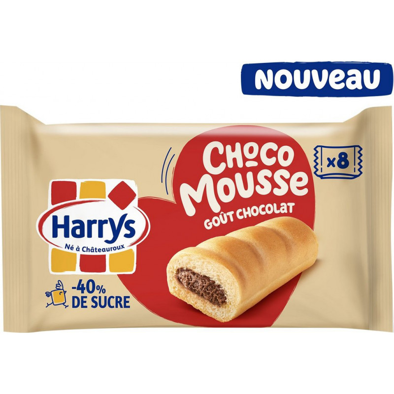 HARRYS Gâteaux moelleux Fourrés Chocolat Choco Mousse Moins de Sucres 8 sachets