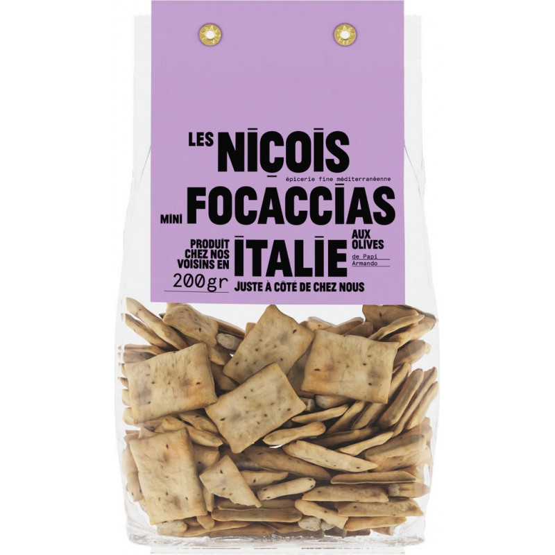LES NICOIS Biscuits apéritif mini-focaccias aux olives de Papi Armando 200g