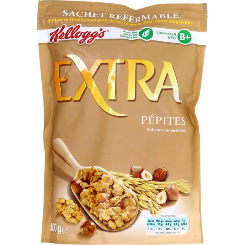 Des délicieuses céréales sous formes de pépites de noisettes caramélisées. Sachet refermable qui permet de préserver le goût plus longtemps. Lot économique de 3 sachets. Avoine 50%, sucre roux, huile végétale (huile de palme), farine de blé, noisettes caramélisées 7,5% (noisettes, sucre, antioxydants: E464, E306), noix de coco séchée, sirop de sucre inverti, morceaux de céréales saveur noisette céréales croustillantes (farine de riz, farine de blé, sucre, farine de blé malté, poudre de petit-lait, sel, huile végétale (huile de colza), émulsifiant: E471), sucre, gomme arabique, arôme], sel, extrait de malt d'orge, arôme. Vitamines et Minéraux: Vitamines (PP, B6, B2, B1, B9, B12), fer. Produit unitaire EAN 5053827105590, lot de 3 EAN 3701018066954.