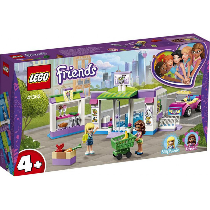 Il est temps de faire les courses de la semaine avec l'ensemble créatif Le supermarché de Heartlake City LEGO® Friends 41362. Les enfants peuvent conduire la voiture jusqu’au supermarché, décider de ce qu’il faut acheter, charger le caddie, puis payer à la caisse. Une fois les achats terminés, le moment est venu de se détendre entre amis au stand de glaces. Cet ensemble de jeu LEGO 4 est spécialement conçu pour être à la fois simple et amusant pour les enfants d'âge préscolaire et les jeunes enfants. Son joli magasin plein de nourriture et sa voiture sont construits à partir de plaques de base spéciales, qui permettent aux constructeurs les plus novices de créer tout seuls des bâtiments, des véhicules et plus encore. Le guide de construction et de jeu inclus aide également les enfants à comprendre les instructions de montage et à développer leur imagination et leur confiance en eux: idéal pour débuter la construction avec les briques LEGO dans un cadre LEGO Friends familier. Ce supermarché LEGO inclut une voiture, un stand de glaces séparé et beaucoup de produits alimentaires, pour des heures de jeu imaginatif. L'ensemble inclut également 2 mini-poupées. Les ensembles LEGO® 4 sont spécialement conçus pour être à la fois simples et amusants pour les jeunes enfants. Ils permettent aux enfants de développer leur confiance en eux grâce à des instructions de montage simples, pour une entrée parfaite dans la construction avec les briques LEGO. Rendez-vous au supermarché de Heartlake City avec Olivia et Stéphanie pour une séance de courses! Produit unitaire EAN 5702016370263.