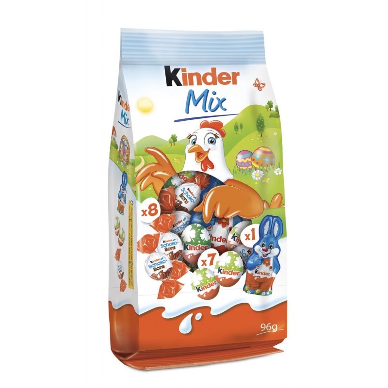 Le mix Kinder c est un mélange de délicieux chocolat: Kinder mini eggs, Kinder Schoko-bons, et mini moulage. Un format idéal pour la chasse aux oeufs! Lot économique de 3. Chocolat supérieur au lait 39% (sucre, lait en poudre, beurre de cacao, pâte de cacao, émulsifiants: lécithines, vanilline), sucre, lait écrémé en poudre, huile de palme, beurre concentré, émulsifiants: lécithines, vanilline. Kinde Bueno Mini: Chocolat au lait 31% (sucre, beurre de cacao, pâte de cacao, lait écrémé en poudre, beurre concentré, émulsifiants: lécithines, vanilline), sucre, huile de palme, farine de froment, noisettes 10,8%, lait écrémé en poudre, lait en poudre, chocolat noir (sucre, pâte de cacao, beurre de cacao, émulsifiants: lécithines vanilline), cacao maigre, émulsifiants: lécithines, poudres à lever (carbonate acide de sodium, carbonate acide d'ammonium), sel, vanilline. Kinder Country Mini: Chocolat supérieur au lait 37,5% (sucre, beurre de cacao, lait en poudre, pâte de cacao, émulsifiants: lécithines vanilline), sucre, lait écrémé en poudre, huile de palme, beurre concentré, orge, riz, froment, épautre, émulsifiants: lécithines sarrasin, vanilline. Kinder Mini Eggs: Chocolat supérieur au lait 45% (sucre, lait en poudre, beurre de cacao, pâte de cacao, émulsifiants, vanilline), sucre, lait écrémé en poudre, huile de palme, noisette 6,5%, beurre concentré, émulsifiants. Produit unitaire EAN 8000500210970, lot de 3 EAN 3701018086853.