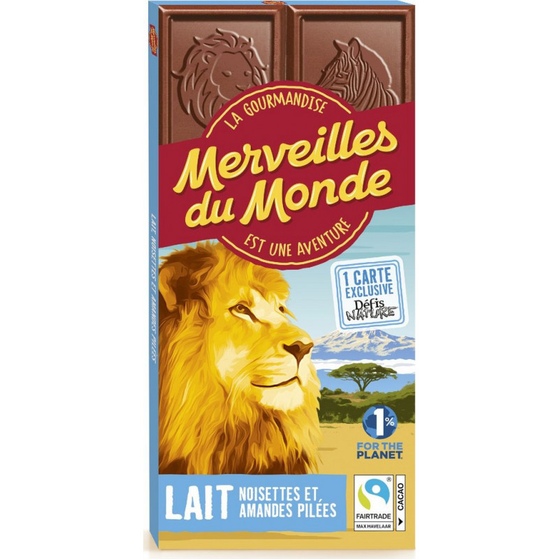 KROKOLA Tablette de chocolat au lait, noisettes et amandes pilées merveilles du monde la tablette de 100g
