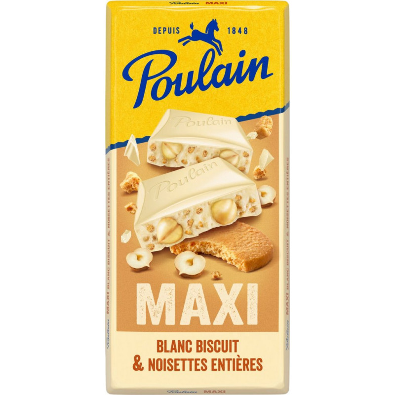 POULAIN Tablette de chocolat blanc maxi noisettes la tablette de 190g
