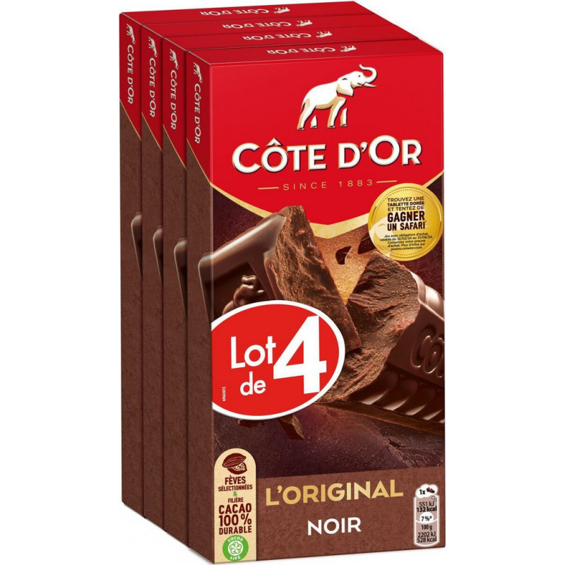 COTE D'OR COTE D COTE D'OR D'OR OR OR OR Tablette de chocolat noir L'Original COTE D'OR les 4 tablettes de 100g