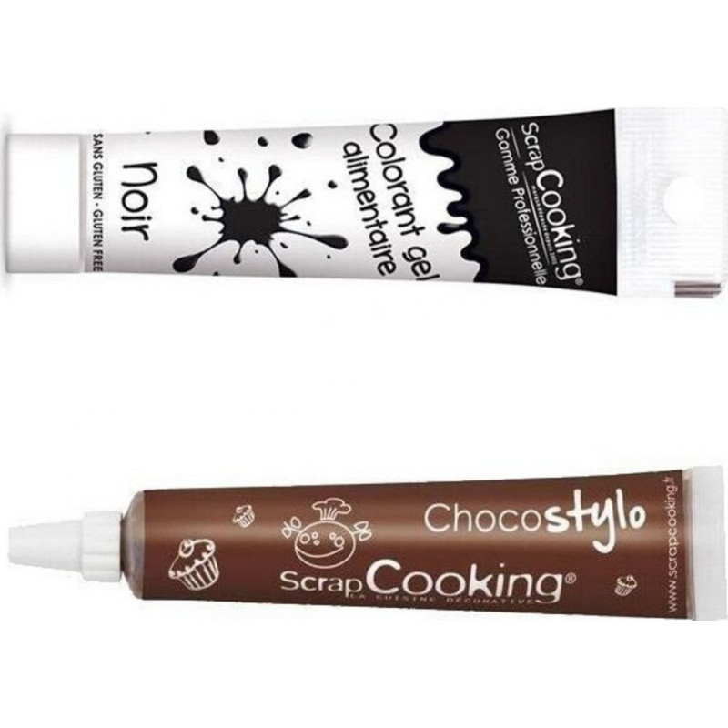 SCRAPCOOKING Stylo Chocolat + Gel Colorant Alimentaire Noir