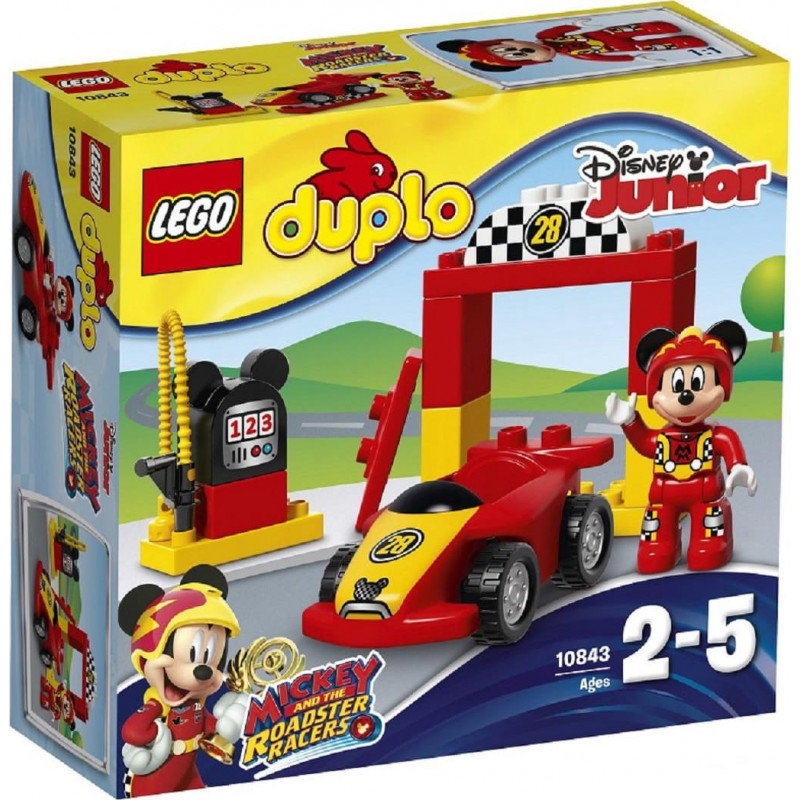 1 figurine LEGO® DUPLO®: Mickey de Disney dans sa tenue de course. 1 décapotable à construire avec un aileron amovible, une porte de départ et une pompe à essence avec la forme des célèbres oreilles de Mickey. des briques décorées de pompe à essence et un panneau de porte de départ. La décapotable de Mickey mesure plus de 4cm de haut, 11cm de long et 5cm de large. La porte de départ mesure plus de 11cm de haut, 9cm de large et 3cm de profondeur. Aidez votre petit fan de Mickey à construire la voiture et à faire le plein pour la prochaine grande course de Mickey Mouse. Créez des histoires de course sans fin et passionnantes avec le célèbre personnage de Disney. Aidez votre enfant à maîtriser des compétences de construction de base avec ce modèle facile à construire. Les produits LEGO® DUPLO® sont amusants et sûrs pour les jeunes enfants. Aidez Mickey de Disney à préparer sa décapotable pour la prochaine course! Les jeunes fans de Mickey adoreront construire et reconstruire la voiture de course, la porte de départ et la pompe à essence en forme de Mickey. Aidez votre enfant à développer sa motricité. Comprend une figurine LEGO® DUPLO®: Mickey Mouse de Disney. Produit unitaire EAN 5702015866590.