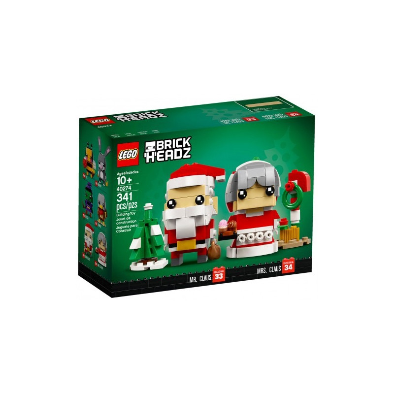 Invite le père et la mère Noël 40274 LEGO® BrickHeadz™ chez toi pour partager un moment festif et amusant. Découvre le bonnet à pompon du père Noël, sa barbe blanche touffue, la boucle marron et le sac amovible, plus un arbre à construire et une pile de cadeaux. La mère Noël a un bâton de sucre d'orge et un assortiment de gâteaux et biscuits. Chaque personnage est fourni avec une plaque de base à construire pour les collectionneurs, dotée d'un calendrier saisonnier et du logo BrickHeadz. Il est donc possible de l’exposer près de la cheminée, sur un bureau ou partout ailleurs. Les personnages à construire du père et de la mère Noël LEGO® BrickHeadz™ ont des yeux décorés, des tenues rouge et blanc festives, une hotte de cadeaux amovible et un assortiment de gâteaux et de biscuits. Inclut aussi un arbre à construire et une pile de cadeaux. Chaque personnage LEGO® BrickHeadz™ est fourni avec sa plaque de base à construire pour les collectionneurs, dotée d'un calendrier saisonnier et du logo BrickHeadz. Amuse-toi à agrandir ta collection LEGO® BrickHeadz™ avec d'autres personnages de tes films, séries TV, jeux et bandes dessinées préférés. Mélange tes personnages LEGO® BrickHeadz™ pour créer des hybrides super cool ou tes propres personnages géniaux. Chaque personnage mesure plus de 8cm de haut sans la plaque de base. Chaque plaque de base mesure plus de 11cm de large et 7cm de profondeur. Souhaite un joyeux Noël avec le père et la mère Noël LEGO® BrickHeadz™! Produit unitaire EAN 5702016122053.