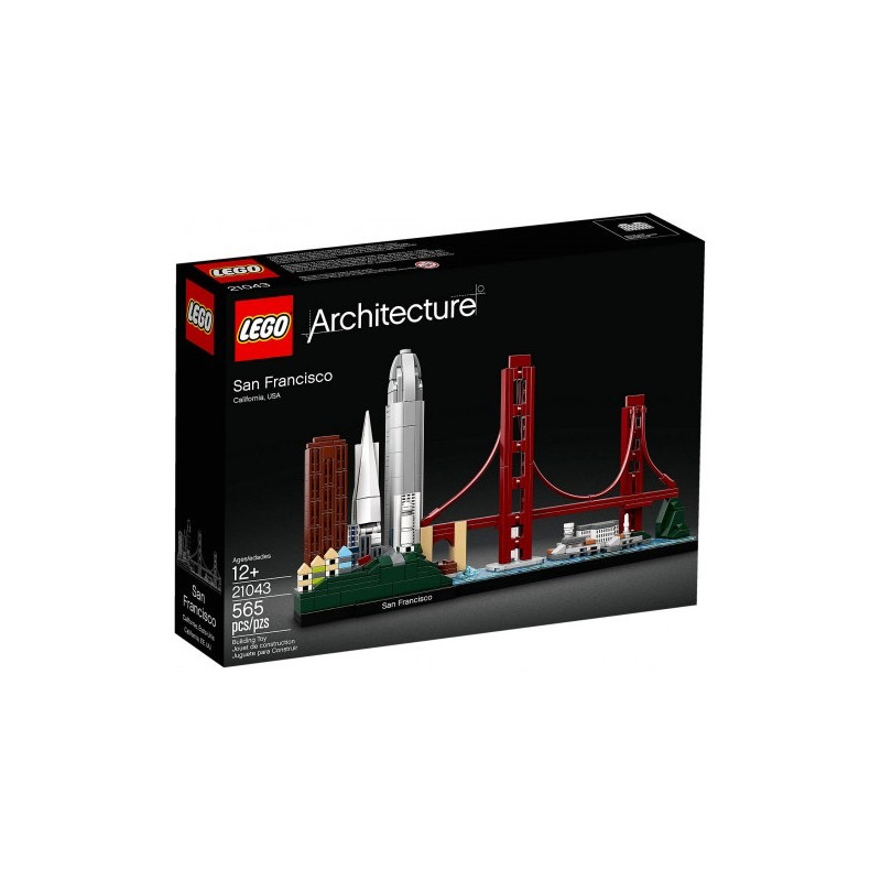 Recréez l'incroyable architecture de San Francisco avec ce modèle de la Collection Skyline LEGO® Architecture 21043. Cet ensemble LEGO à collectionner comprend des attractions et des monuments emblématiques de San Francisco, notamment les célèbre bâtiments « painted ladies », 555 California Street, la Transamerica Pyramid, tour Salesforce, la Coit Tower, Fort Point, le Golden Gate Bridge et l'île d'Alcatraz. Une plaque de base carrelée de bleu représentant le détroit du Golden Gate et une plaque avec un écriteau San Francisco ajoutent la touche finale à ce magnifique modèle. Les modèles de la collection Skyline LEGO Architecture sont parfaits pour être exposés à la maison ou au bureau. Ils ont été développés pour toutes les personnes qui s'intéressent au voyage, à l'architecture, à l'histoire et au design. Chaque ensemble est à l'échelle pour donner une idée précise de la taille comparative de chaque structure, avec des couleurs réalistes. Interprétation LEGO® Architecture de San Francisco. Comprend des monuments et des attractions célèbres de San Francisco, notamment les célèbres bâtiments « painted ladies », 555 California Street, la Transamerica Pyramid, la tour Salesforce, la Coit Tower, Fort Point, le Golden Gate Bridge et l'île d'Alcatraz. Dispose également d'une plaque de base carrelée de bleu représentant le détroit du Golden Gate. Le livret inclus contient des informations sur le designer, l'architecture et l'histoire de chaque structure, ainsi que des faits historiques sur San Francisco et son héritage architectural. (En anglais uniquement. Autres langues disponibles en téléchargement sur LEGO.com/architecture). Comprend une base carrelée de 4 x 34 avec un écriteau décoratif «San Francisco». Permet de récreer les villes les plus animées du monde avec la collection Skyline LEGO® Architecture. La ligne de produits LEGO® Architecture célèbre le monde de l'architecture par le biais de la brique LEGO, pour toutes les personnes qui s'intéressent au voyage, au design, à l’architecture et à l'histoire. Cet ensemble comprend plus de 629 pièces. Il mesure plus de 16cm de haut, 28cm de large et 7cm de profondeur.". Une véritable exposition de l'incroyable ville de San Francisco avec ce modèle de LEGO® Architecture! Produit unitaire EAN 5702016368307.