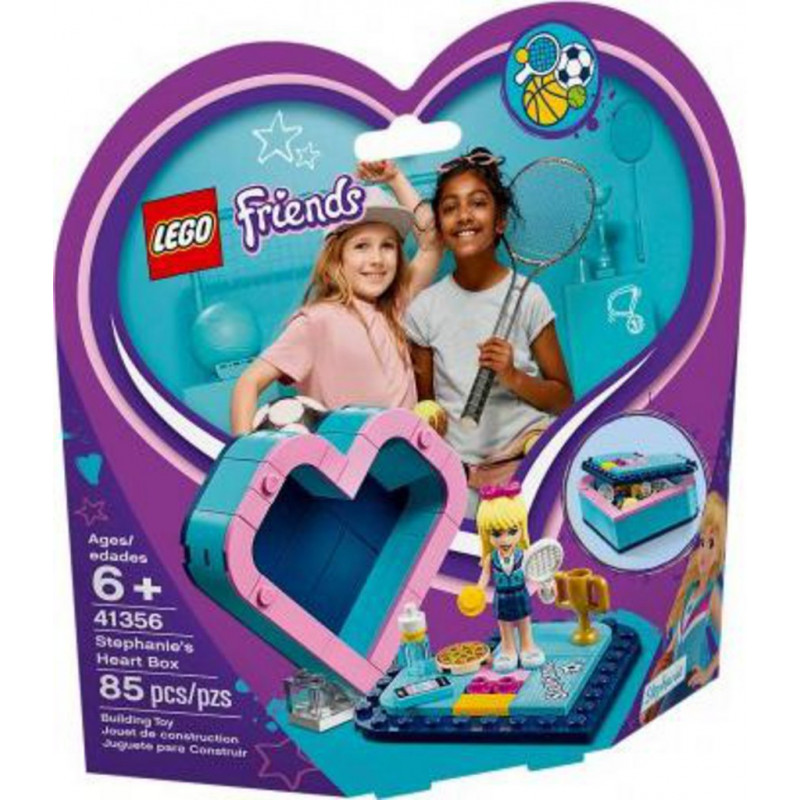 La boîte cœur de Stéphanie LEGO® Friends 41356 est une jolie mallette de transport pour la sportive Stéphanie LEGO Friends et tous les articles qui représentent le mieux son caractère. À l’intérieur de la boîte en forme de cœur se trouvent une raquette de tennis et une balle, afin de montrer ses compétences sportives, où qu'elle soit. Il y a aussi un trophée d'or qui démontre que le dévouement et le travail acharné portent leurs fruits! Inclut la mini-poupée Stéphanie. Inclut la mini-poupée Stéphanie. Comprend une mallette en forme de cœur à construire dans les couleurs de Stéphanie, avec une plaque nominative Stéphanie. Les accessoires incluent une raquette de tennis, une balle, un trophée, une bouteille d'eau, une pizza, un téléphone mobile et un ruban pour les cheveux. Cette boîte permet de montrer ses talents au tennis et son trophée. Il est possible de tout mettre à l'intérieur de la jolie boîte en forme de cœur pour l'emmener et jouer en voyageant! Possibilité de placer la boîte sur son stand pour l’exposer dans sa chambre, puis enlèver le couvercle pour créer une scène pour Stéphanie. Les ensembles LEGO® Friends encouragent le jeu créatif et rendent la construction imaginative et amusante. Possibilité d'empiler ce jouet LEGO® Friends très cool avec la boîte cœur d'Andréa 41354, la boîte cœur d'Emma 41355, la boîte cœur d'Olivia 41357 et la boîte cœur de Mia 41358 pour découvrir les personnalités de toutes les amies d'Heartlake City. Mesure plus de 3cm de haut, 8cm de large et 8cm de profondeur. Instructions de montage. Une véritable occasion d'emmener Stéphanie LEGO® Friends dans sa boîte coeur, quelque soit l'endroit! Produit unitaire EAN 5702016368741.