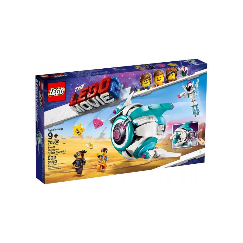 Les enfants peuvent venir en aide à Emmet et Lucy pour qu’ils ne se fassent pas capturer par le vaisseau Systar de Sweet Mayhem de LA GRANDE AVENTURE LEGO® 2 70830. Cet ensemble comprend un cockpit qui s’ouvre avec de la place pour une mini-poupée ou une figurine, un train d'atterrissage rétractable, un lanceur de disques, un rouleau d'autocollants et une cellule de prison qui s'ouvre. Ce jeu de construction comprend 2 figurines, une mini- poupée et des figurines à construire d'Étoile et de Cœur pour un jeu de rôle de LA GRANDE AVENTURE LEGO® 2. Comprend 5 personnages de LA GRANDE AVENTURE LEGO® 2: une figurine LEGO d’Emmet et de Lucy, plus une mini-poupée Sweet Mayhem et des figurines de Cœur et d’Étoile construites en briques. Le vaisseau spatial Systar de Sweet Mayhem comprend un cockpit qui s'ouvre pour une mini-poupée ou une figurine, un train d'atterrissage rétractable, un rouleau d'autocollants, un lanceur de disques et une cellule de prison qui s'ouvre avec un panneau de commande amovible et un pistolet Les armes incluent l’arbalète de Lucy et le pistolet de Sweet Mayhem. Les accessoires incluent le carquois de Lucy, les ailes réglables de Sweet Mayhem, un casque, 2 cœurs et des boosters bleus translucides. Mesure plus de 14cm de haut, 16cm de long et 28cm de large. Une poursuite spatiale trépidente avec le vaisseau spatial Systar de Sweet Mayhem! Produit unitaire EAN 5702016368123.