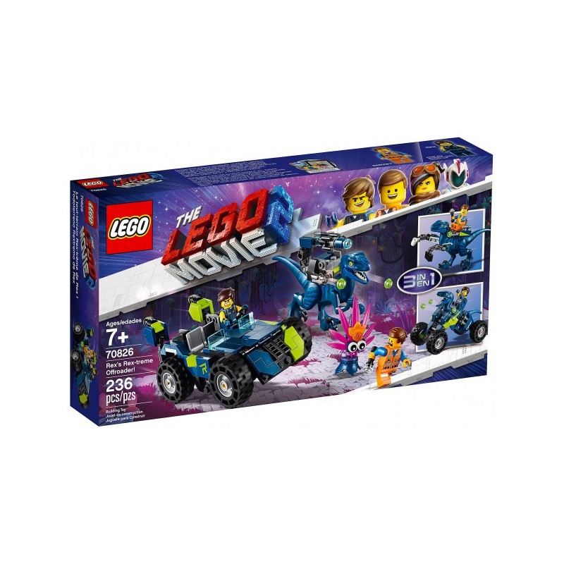 Les enfants peuvent montrer leurs talents de constructeur en transformant le tout-terrain Rextrême 3-en-1 et le Recon Rex-o-saurus en quad Rex-o-saurus ou en Execu-Rex-o-saurus de LA GRANDE AVENTURE LEGO® 2™ 70826. Le tout-terrain a des sièges pour 2 figurines et possède une tourelle rotative arrière avec 2 fusils à tenons, tandis que le Recon Rex-o-saurus comprend des mâchoires qui mordent, 2 fusils à tenons et un pistolet amovible à construire (qui ne tire pas) qui peut également être utilisé comme une arme de figurine. Cet ensemble de jeu comprend 2 figurines et une figurine de Plantimal à construire pour recréer des scènes d’action de LA GRANDE AVENTURE LEGO® 2™. Comprend 3 personnages de LA GRANDE AVENTURE LEGO® 2™ plus une figurine de Plantimal à construire. Comprend le tout-terrain 3-en-1 Rextrême de Rex qui peut être reconstruit avec le Recon Rex-o-saurus pour créer le quad Rex-o-saurus ou l’Execu-Rex-o-saurus. Le tout-terrain Rextrême de Rex dispose d'un double cockpit pour figurine et d'une tourelle arrière rotative avec fusils à tenons. Le Recon Rex-o-saurus comprend des mâchoires qui mordent, des jambes mobiles, 2 fusils à tenons et un pistolet amovible à construire (qui ne tire pas). Le pistolet du Recon Rex-o-saurus s'enlève et s'utilise comme arme de Rex. Les accessoires incluent la lampe de poche d’Emmet et la tasse et le porte-documents de Rex. Le tout-terrain Rex-treme de l'espace Rex mesure plus de 6cm de haut, 14cm de long et 7cm de large. Le Recon Rex-o-saurus mesure plus de 10cm de haut, 13cm de long et 5cm de large. Le quad Rex-o-saurus mesure plus de 8cm de haut, 14cm de long et 7cm de large. L'Execu-Rex-o-saurus mesure plus de 7cm de haut, 13cm de long et 9cm de large. Le tout-terrain de Rextrême se transforme en 3 modèles! Produit unitaire EAN 5702016368086.