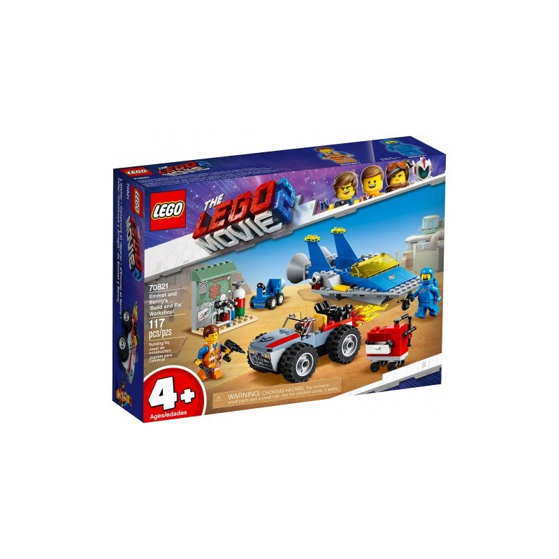 Les enfant vont avoir une expérience de maître constructeur exceptionnelle avec L’atelier « Construire et réparer » d’Emmet et Benny de LA GRANDE AVENTURE LEGO® 2™ 70821! Cet ensemble d’apprentissage LEGO 4 est spécialement conçu pour être facile d'usage et amusant pour des jeunes enfants. Cet ensemble comprend le vaisseau spatial de Benny avec un cockpit pour figurine, des propulseurs qui se déploient, un buggy de l'espace amovible et le buggy d'évasion d'Emmet, ainsi qu'une base spéciale qui permet aux constructeurs, même novices, de ressentir la fierté de construire des bâtiments, des véhicules et plus encore. Le guide d'usage inclus dans l'ensemble aidera l'enfant à construire, jouer, comprendre les instructions, développer son imagination et sa confiance. Une entrée parfaite dans l'univers LEGO. Ce jouet d'astronaute LEGO comprend 2 figurines, une station-service à construire et un chariot avec beaucoup d'outils différents pour des possibilités de jeu infinies. Les ensembles de construction LEGO® 4 sont spécialement conçus pour être amusants et simple d'usage pour les enfants pour les aider à développer leur confiance avec des étapes de construction claires pour une entrée parfaite dans l'univers LEGO. Comprend 2 personnages de LA GRANDE AVENTURE LEGO® 2™: des figurines d'Emmet et Benny. Le vaisseau spatial de Benny comprend un cockpit de figurine, des propulseurs qui se déploient et un buggy d'évasion amovible avec un cockpit de figurine. Le vaisseau d’évasion d’Emmet comprend un siège pour figurine et une flamme de pot d’échappement. Comprend également une station-service et un chariot avec 9 outils. Les accessoires incluent le casque et la bouteille d’air de Benny. Les ensembles créatifs LEGO® 4 initient votre enfant à un vaste univers avec leurs films préférés, des personnages de la télévision et des héros du quotidien. Les ensembles LEGO® 4 ont été précédemment commercialisés sous le nom de LEGO Juniors et sont compatibles avec tous les jouets de construction LEGO pour une construction créative. Ce jouet de construction est un cadeau idéal pour les enfants d’âge préscolaire et les jeunes enfants. Le vaisseau spatial de Benny mesure plus de 5cm de haut, 16cm de long et 9cm de large. Le buggy d'évasion d'Emmet mesure plus de 4cm de haut, 15cm de long et 6cm de large. La station-service mesure plus de 6cm de haut, 6cm de large et 3cm de profondeur. Le vaisseau spatial de Benny est prêt à voler grâce à l’atelier « Construire et réparer » d’Emmet et Benny! Produit unitaire EAN 5702016367935.