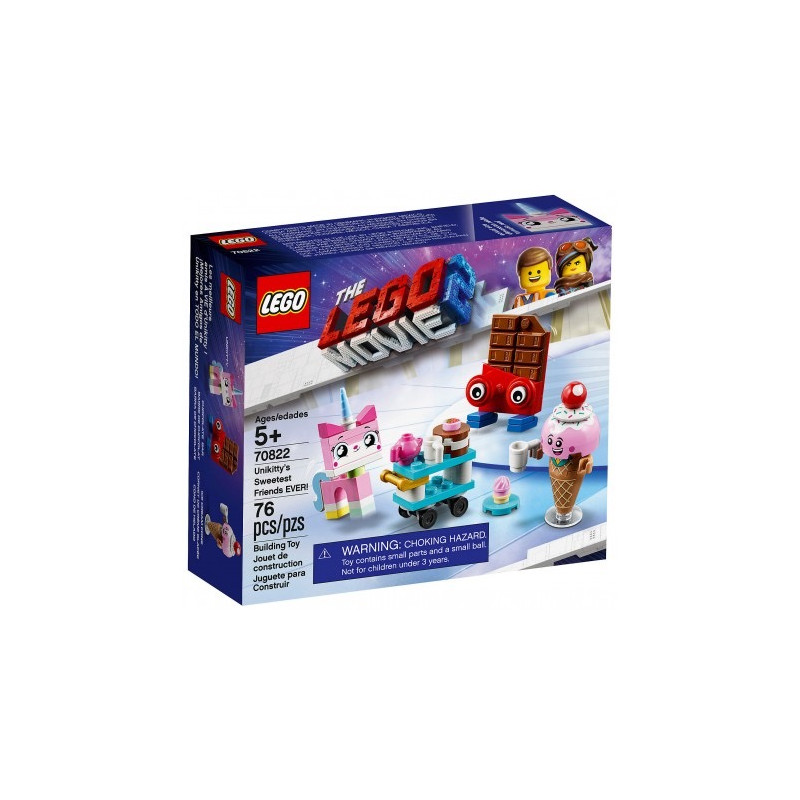 C'est le moment pour vos enfants de prendre un verre et un en-cas avec les amis les plus doux d’Unikitty LA GRANDE AVENTURE LEGO® 2™ 70822! Cet ensemble de construction pour les enfants comprend 3 figurines de LA GRANDE AVENTURE LEGO® 2™ à construire— Unikitty, Cornet de glace et Barre au chocolat, plus une table roulante avec une théière, une tasse de café et des accessoires pour gâteau pour un jeu créatif. Cet ensemble Unikitty LEGO® comprend 3 personnages de LA GRANDE AVENTURE LEGO® 2™: Unikitty avec 2 visages interchangeables, Cornet de glace et Barre au chocolat, plus une table roulante. Les accessoires incluent une théière, une tasse à café et un gâteau. La figurine d'Unikitty mesure plus de 5cm de hauteur. Cornet de glace mesure plus de 5cm de hauteur. Barre au chocolat mesure plus de 5cm de hauteur. La table roulante mesure plus de 5cm de haut, 3cm de long et 3cm de large. Un moment de partage avec Unikitty et ses amis! Produit unitaire EAN 5702016367942.