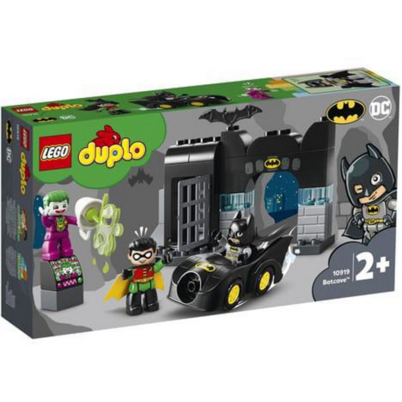 Lorsque le Joker™ s’évade de prison, les jeunes super-héros se joignent à Batman™ et Robin™ pour essayer de le capturer et de le ramener dans la cellule qu’il n’aurait jamais dû quitter. Tous les ingrédients sont réunis pour de l’action et des rires, des jeux de rôles créatifs et pour aider les tout-petits à développer de super-compétences! Apprendre en s'amusant avec Batman et Robin Le set LEGO® DUPLO® Batman La Batcave™ (10919) inclut les personnages de Batman, Robin et le Joker dans un jeu aux multiples possibilités qui encourage la créativité et stimule l’éveil des jeunes enfants. Les plus petits développent leur motricité fine en manœuvrant la Batmobile™ sous le porche et en ouvrant et refermant la porte de la prison. Le fait de mettre en scène l'interaction entre les 3 personnages favorise le développement social et émotionnel. Pas besoin de piles. Le jeu commence sans attendre et offre aux plus petits des activités propices au développement qui stimulent leur imagination. Produit unitaire EAN 5702016618099.